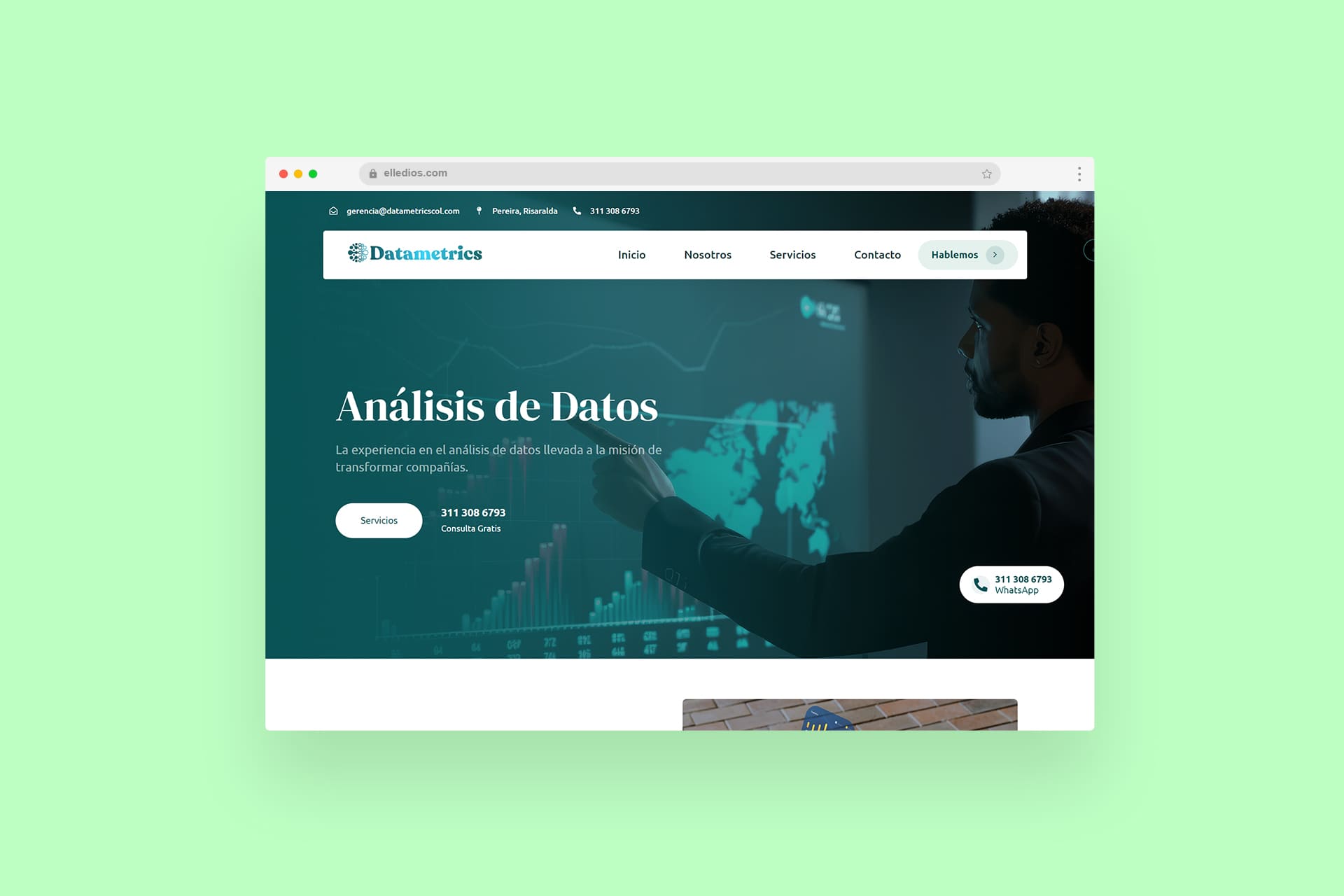 Cuando se trata de datos, todo tiene que tener un aspecto impecable. Creé su identidad de marca desde cero y les entregué un elegante sitio de WordPress en un tiempo récord. Los datos nunca han tenido tan buen aspecto.